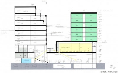 Quality Hotel Globe, sektion A-A. Planritning: White Arkitekter